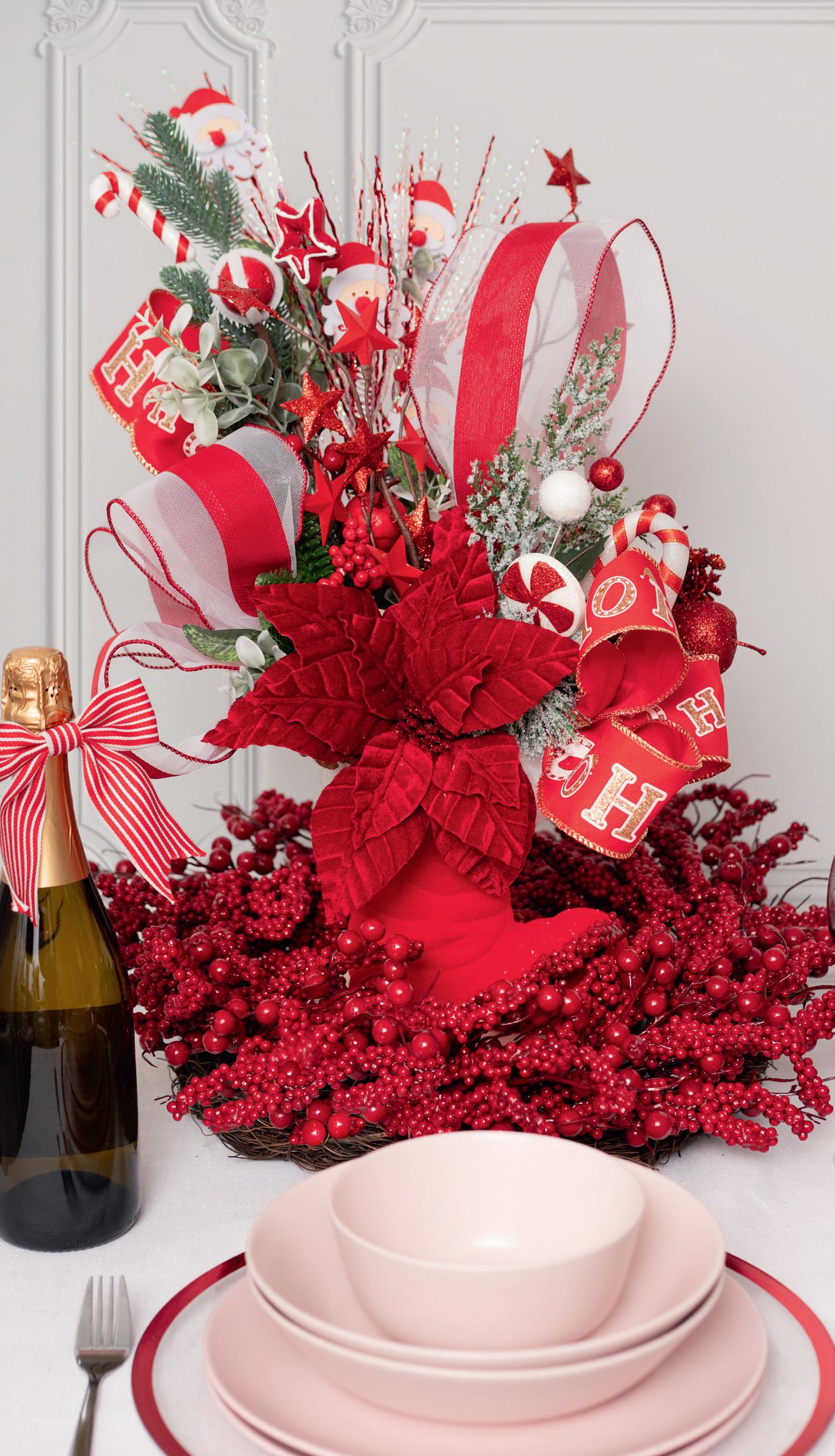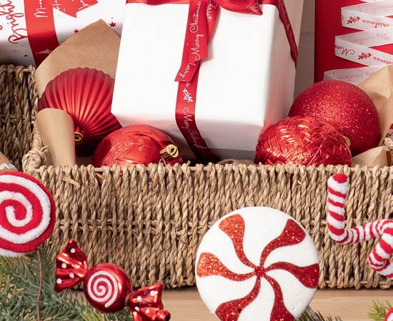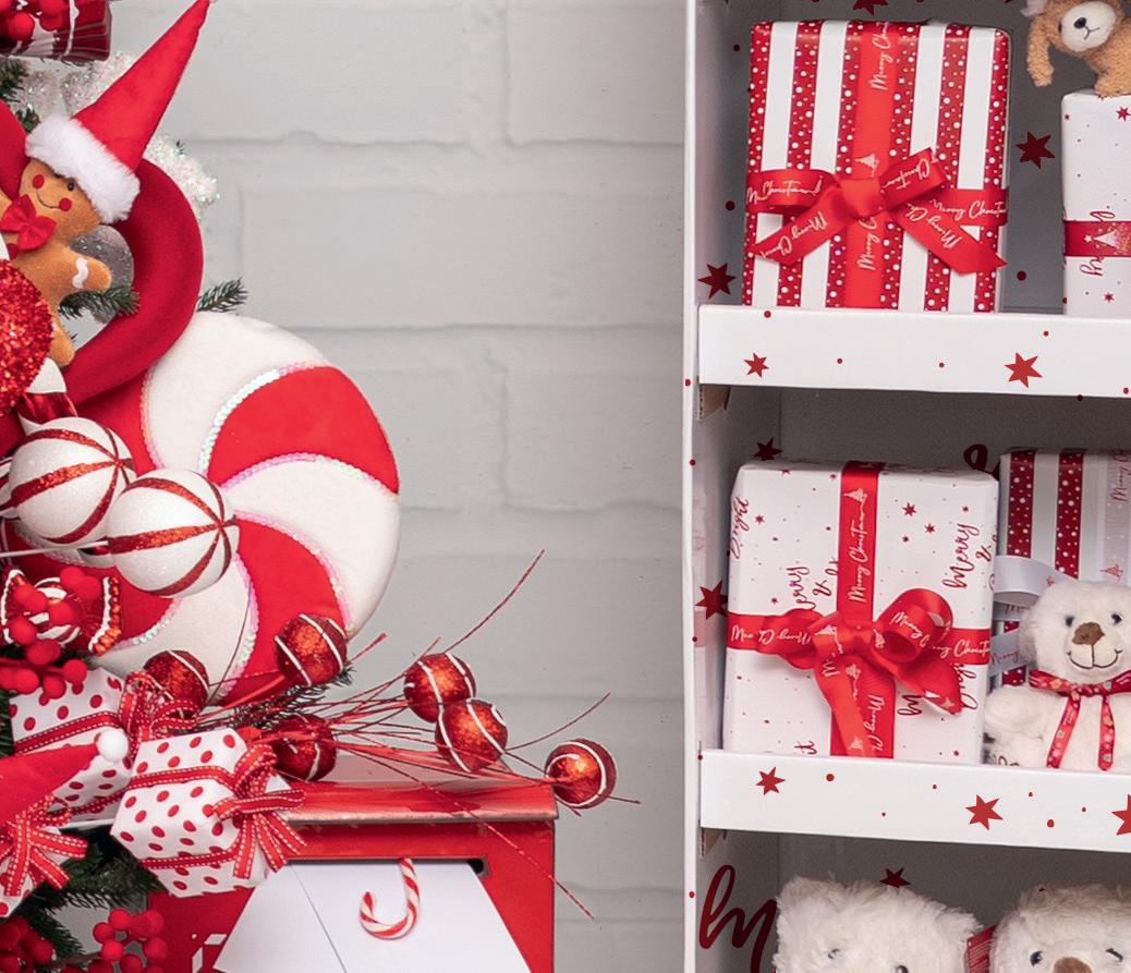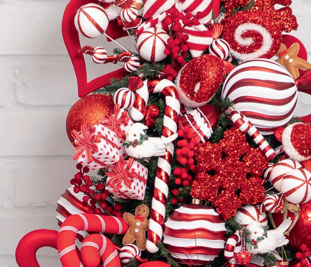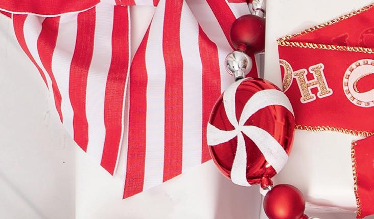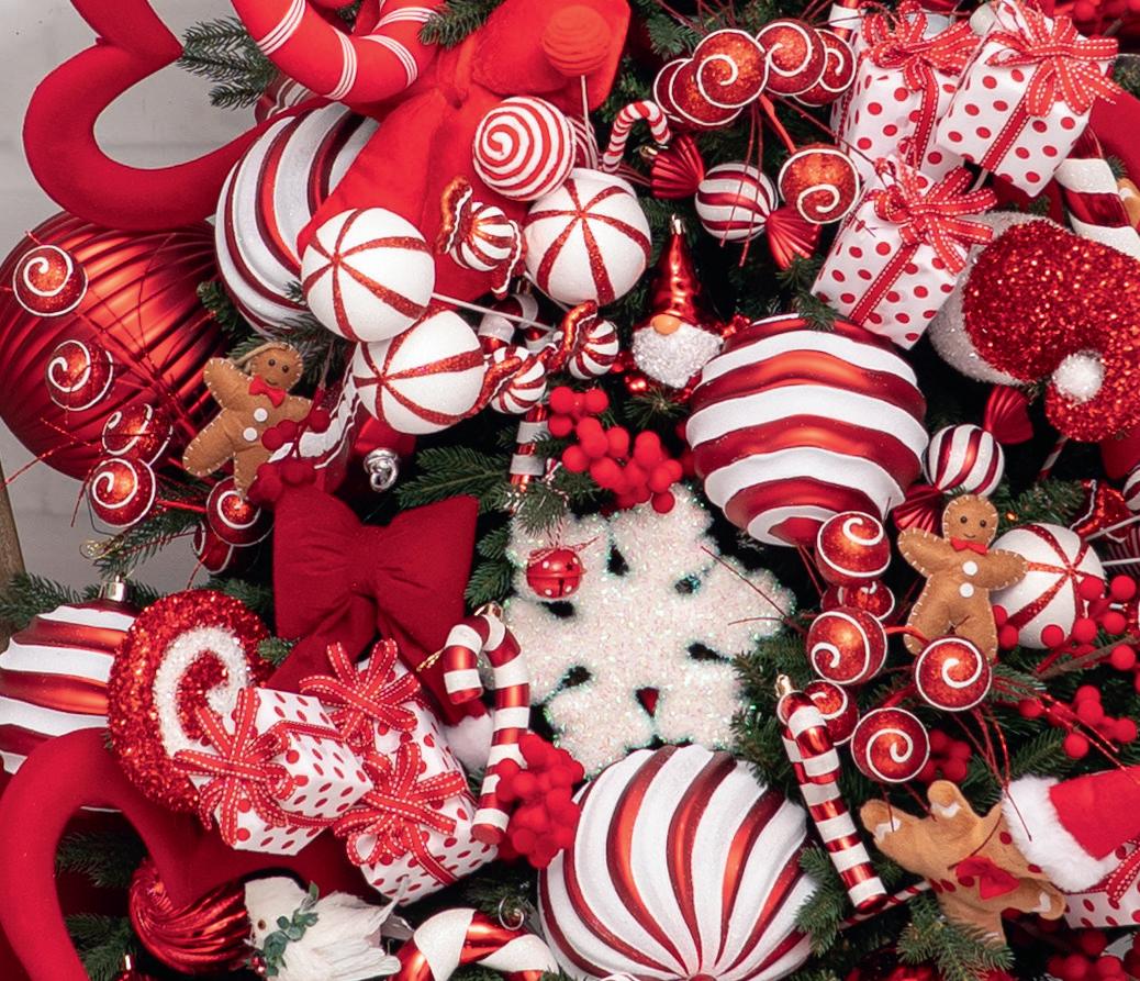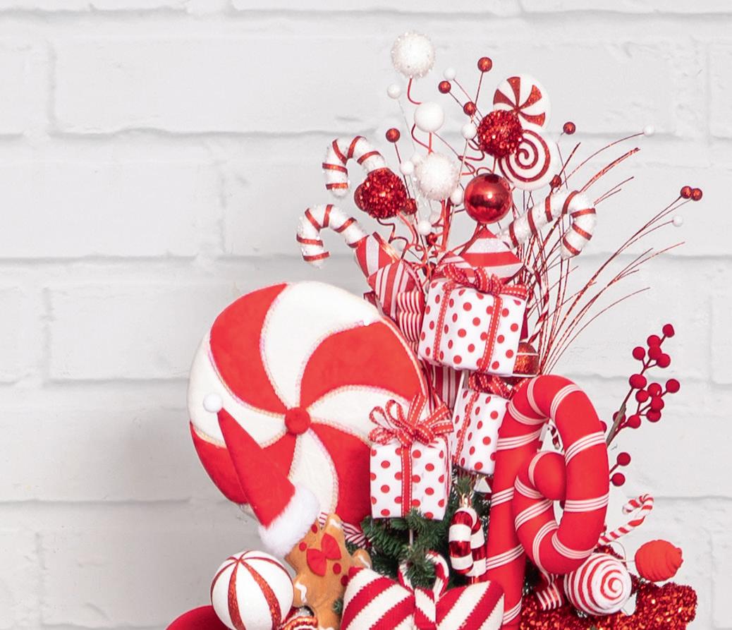 Mixed Candy w Bow Tree Topper Red & White (15x30x42cmH)