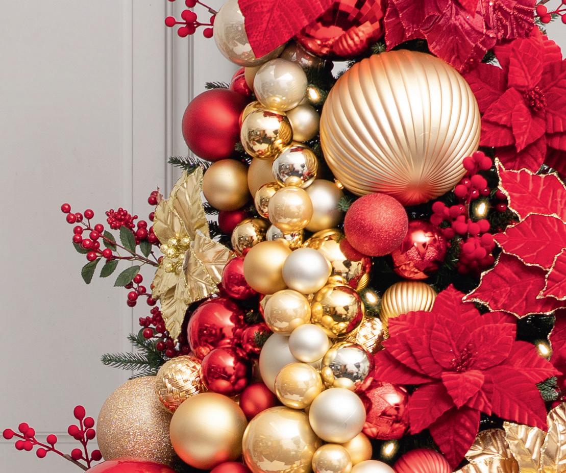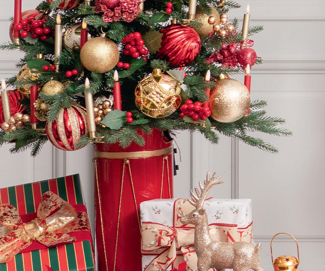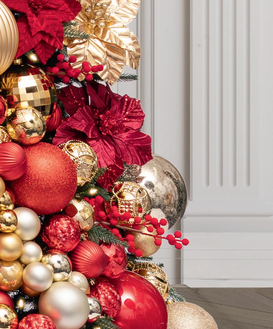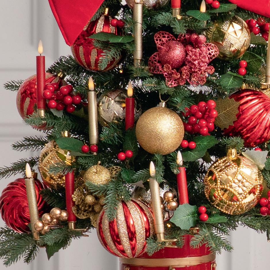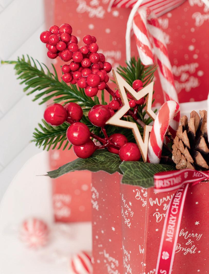 Pine Gift Box Bauble Pick Pack 3 Red & Gold (20cmH)