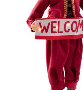 Standing Elf w LED Welcome Sign Red (24x13x88cmH)