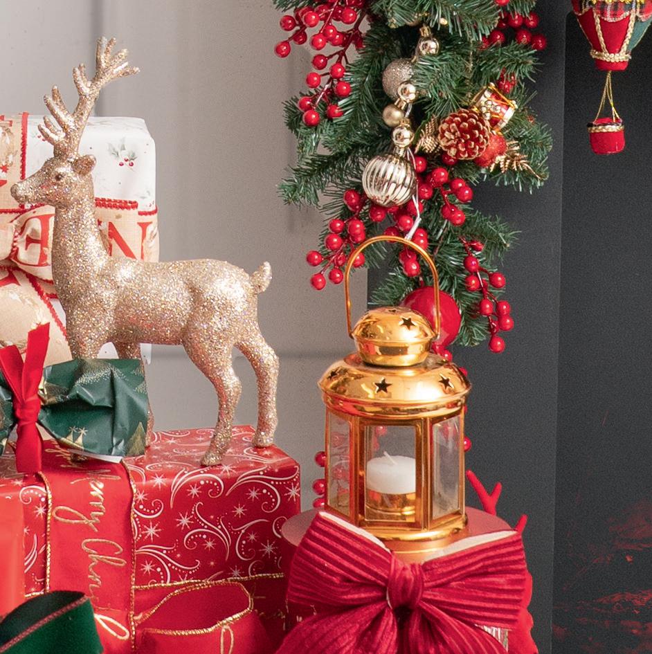 Metal Reindeer Taper Candle Holder Antique Gold (20cmH)