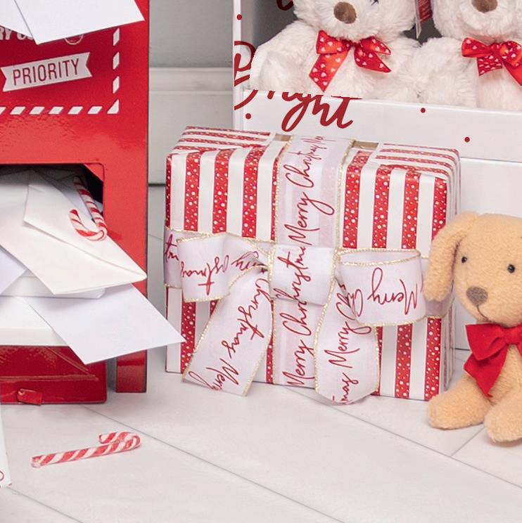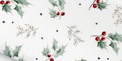 Wrapping Paper Roll Christmas Holly Gloss White (50cmx50m)
