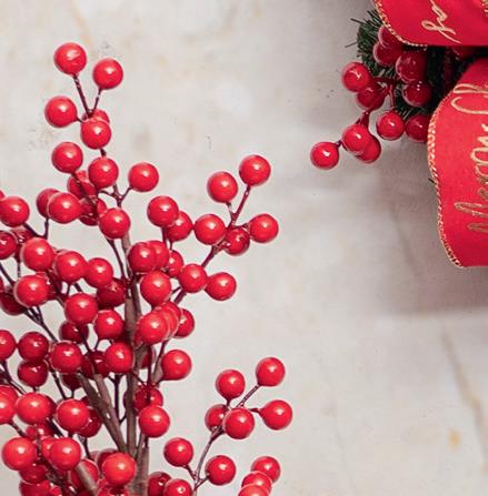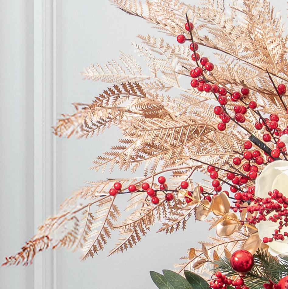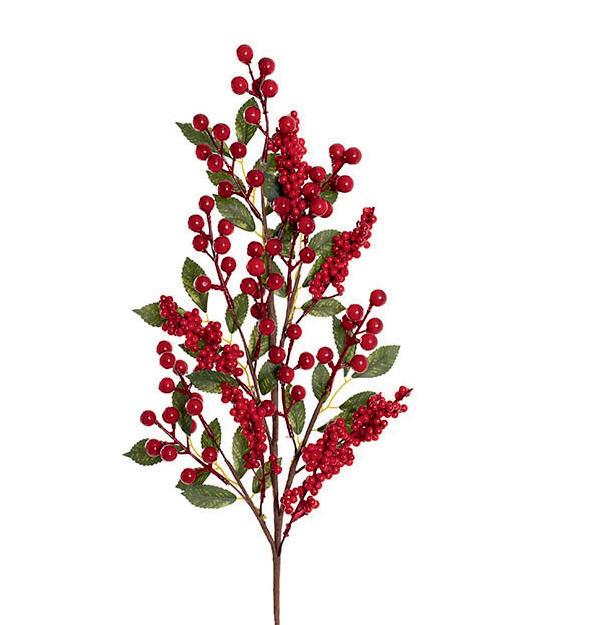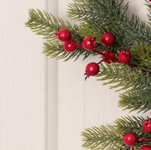 Mixed Pine Leaf Red Berry Spray Green (50cmH)