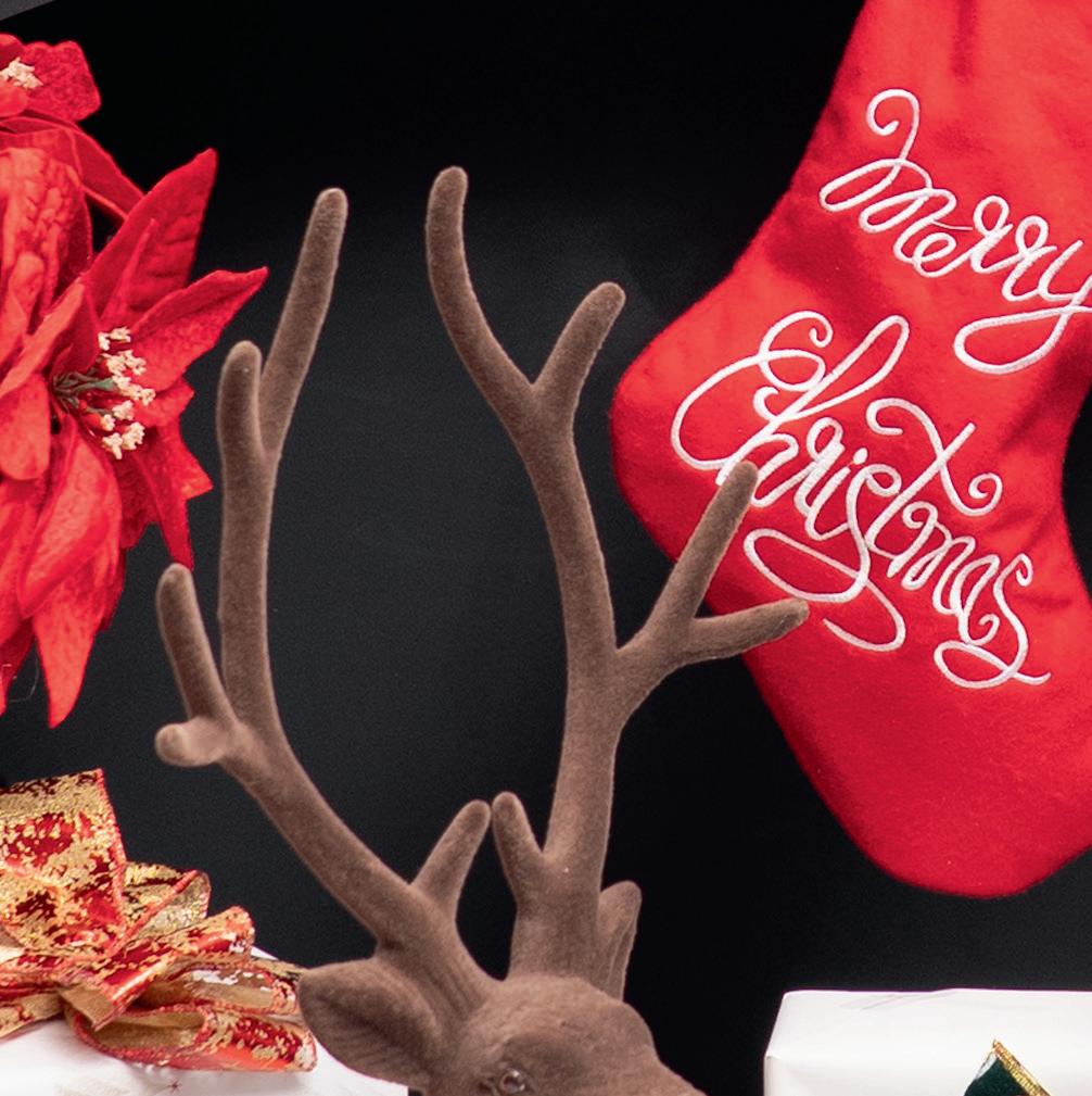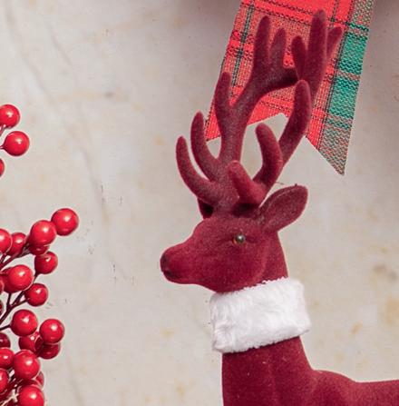 Hanging Flocked Reindeer Pack 3 Burgundy (6x13cmH)