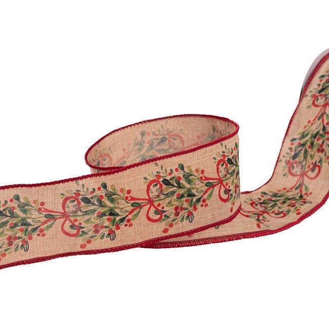 Ribbon Linen Wire Edge Mistletoe Natural (60mmx20m)