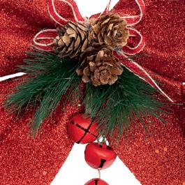 Pre-Made Bow Christmas Glitter & Bell Red (15x18cm)