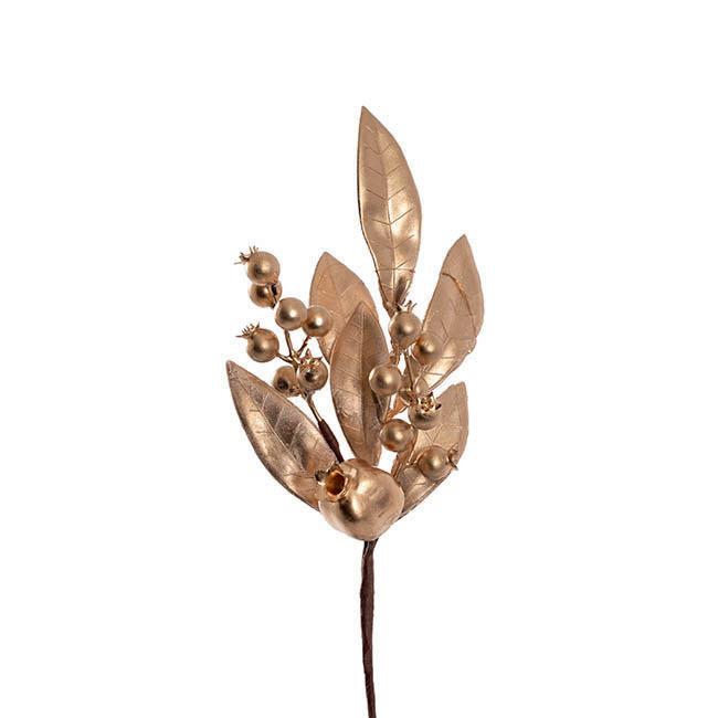 Pomegranate Berry Leaf Pick Gold (30cmH)