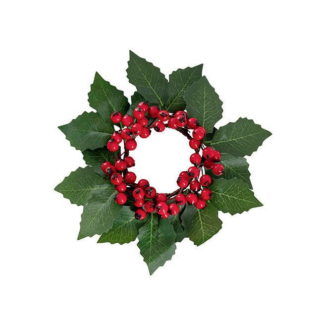 Holly Berry Candle Ring Wreath Red (17cmD)