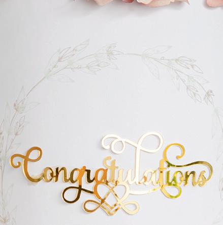 Cake Topper Congratulations Acrylic Gold (17cmWx15cmH) $3.96ea or 3+ $3.56ea inc GST