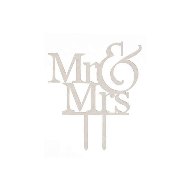 Cake Topper Mr & Mrs Acrylic Silver (13cmWx15.5cmH) $3.25ea or 3+ $2.92ea inc GST