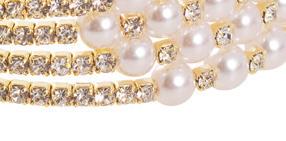 Corsage Wrist Bracelet Pearl & Diamante Gold (5.5cmDx2cmH)