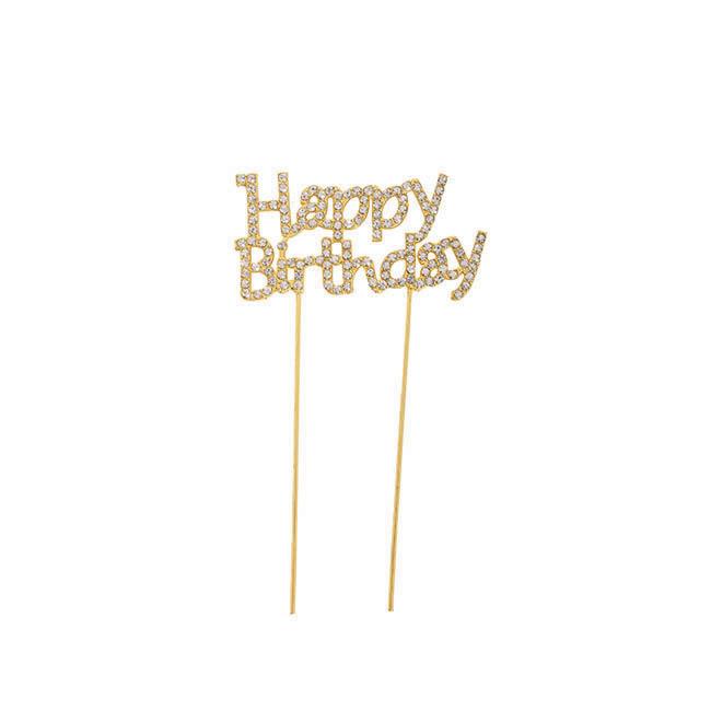 Cake Topper Happy Birthday Rhinestone Gold (9.5cmWx16cmH) $6.00ea or 2+ $5.40ea inc GST