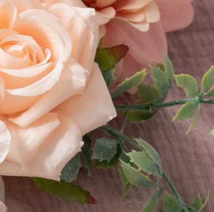 Rose Corsage w Pearl Wrist Bracelet Pack 2 Peach (12cmH)