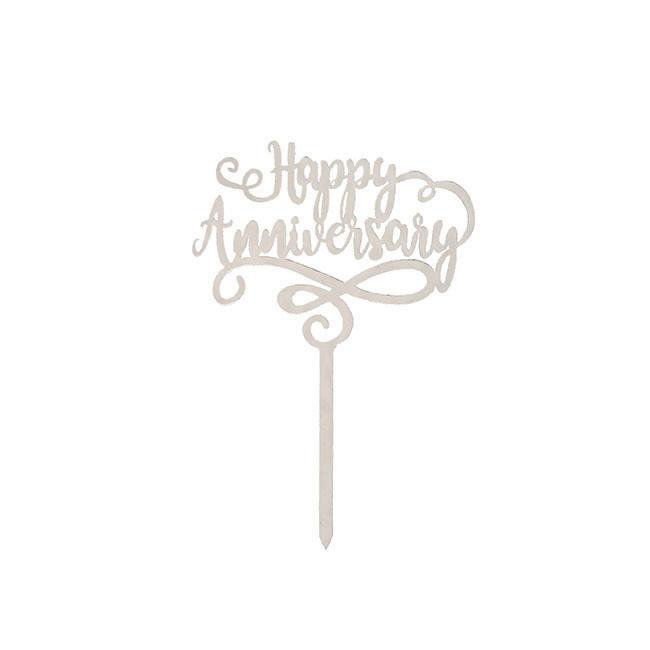 Cake Topper Happy Anniversary Acrylic Silver (10.5cmWx14cmH) $2.97ea or 3+ $2.67ea inc GST