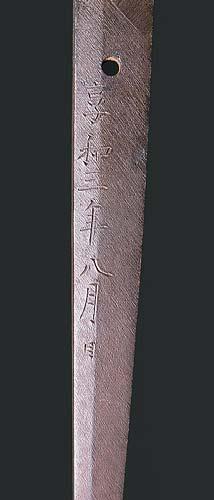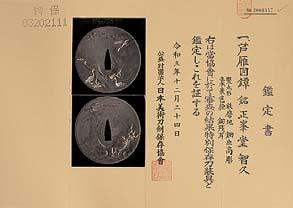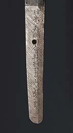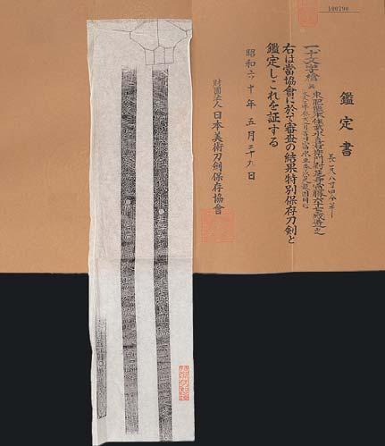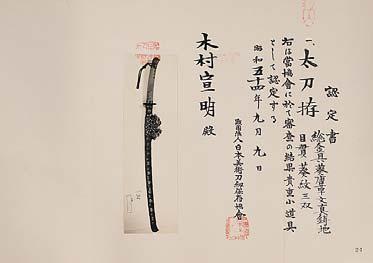 88 C-167 半村有寿 刀 付半太刀拵 白鞘 ¥850000~ 付錦刀袋 紫刀袋(小ヤブレ) 特別貴重刀剣認定書(日刀保) 長さ709 反り14 目くぎ穴1 差裏鎺元鎬筋小鍛キズ 差裏鎬地小鍛キズ 表銘:以南蛮鉄半村有寿造之 裏銘:文政十三年寅(1830)八月日 大阪府第46490号 C-168 摂津住助高 刀 付拵 白鞘 ¥850,000~ 付錦刀袋(ヤブレ) 紫刀袋 甲種特別貴重刀剣認定書(日刀保) 所載コピー 長さ708 反り10 目くぎ穴1 差裏中腹刃境鍛キズ 差裏横手下刃中小鍛キズ 棟小サビ 表銘:摂津住助高 香川県第11317号 『助廣大鑑』(光村推古書院・昭和55)所載