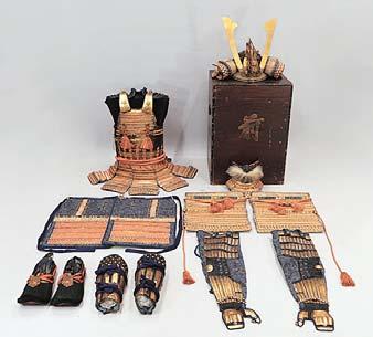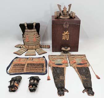 30 C-031 鉄十四間筋兜付五枚胴具足 ¥550000~ C-032 半首兜付伊予札二枚胴具足 ¥450000~ 付具足櫃(破損)
