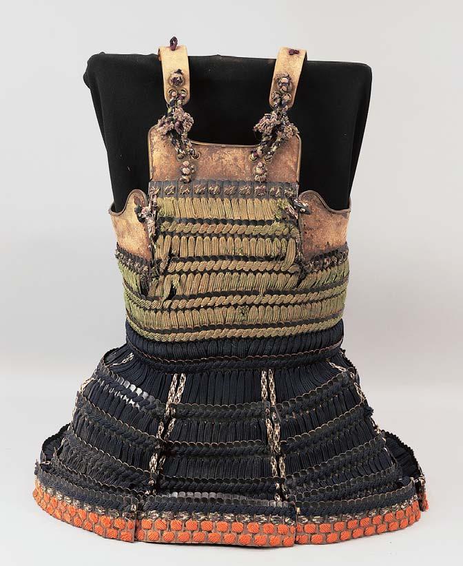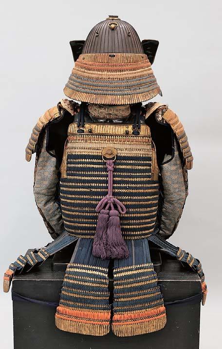 12 C-011 鉄錆地六十二間小星兜付 韋包二枚胴具足 ¥2,000,000 「家永」在銘の端整な小星兜に加え、黒と茶の皺韋、色々の威絲、絵韋、家地による配色の妙をみせる。 ※巻末に詳細あり