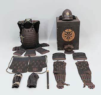 33 C-039 変兜付胸取二枚胴具足 ¥1,000,000~ 付溜塗太鼓櫃 ※巻末に詳細あり