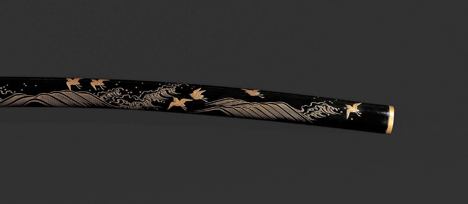 100 C-186 波千鳥蒔絵打刀拵 ¥500,000~ 付朱刀袋(スレ、キレ) 総長96