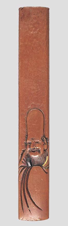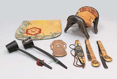 66 C-123 三具 ¥50,000~ 付合箱(杉) 家地欠 溝口菱紋 C-122 鉄地錦包 胴当 ¥50,000~ 付時代識箱 (桐) C-121 鉄面頬 ¥50,000~ 火中か C-120 金箔押馬印 ¥100000~ 47×46×35 縫合キレ C-124 違鷹羽紋羊歯蒔絵旗指竿 ¥70,000~ 総長99 C-125 鳥居紋旗指物額 ¥65,000~ 48×61 額61×74 C-127 瓢形旗印 ¥30,000~ 11×11×19 木胎箔押 C-126 鉄砲隊旗額 ¥35,000~ 16×31 額35×48 「てつはう九」墨書