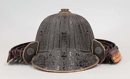 56 C-075 野郎頭形兜 ¥450,000~ 威糸キレ 漆剥離 毛植損傷 C-076 鉄黒漆塗二十六間筋兜鉢 ¥450000~ 付時代識箱(桐)