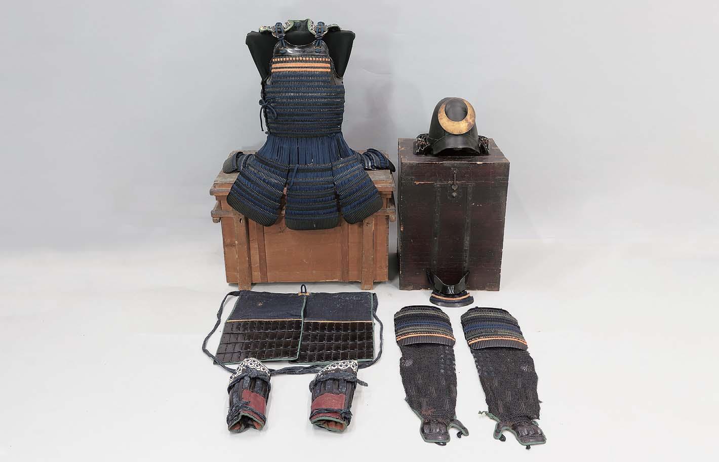 22 C-021 鉄五十間筋兜付色々威二枚胴具足 ¥1,350,000~ 付具足櫃(底補修) ※巻末に詳細あり