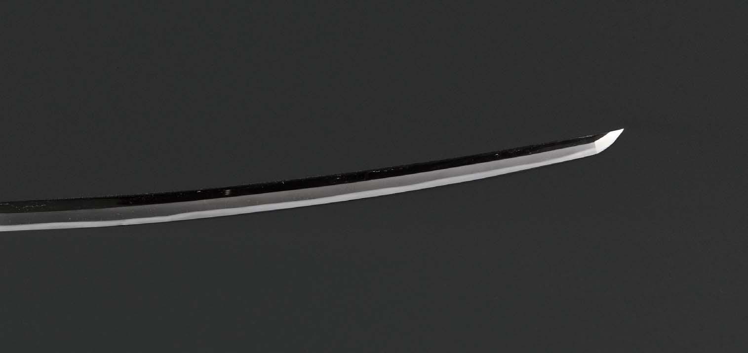 46 #023 朱具足 ¥1,200,000~  兜 鉄板八枚矧重ねの突盃兜で、総体を黒漆塗とし、加飾を施さない。眉庇には切鉄の眉を置いて黒漆塗とし、一本角本を立て、金工笹 葉前立を挿す。 は切付盛上札五段を朱漆塗とし、紺絲で毛引に威す。吹返は小さく一段、素文とする。肩摺板には漆剥離をみる。 面具 両面朱漆塗の目下頬。糟毛髭、金銅歯を植える。耳は古様な六曜を透かし、汗抜孔を穿つ。垂 と同仕立として四段。耳部剥離。 胴 鉄板を韋包して碁石頭に切付け、菱綴まで黒漆塗した二枚桶側胴とする。前立挙三段、後四、長側五段。裏は一面黒韋張。三板、肩上 は黒漆雁木篠とし、襟廻しは亀甲金を茶羅紗で包む。前は鼻紙袋を付し、背は角合当理に受筒、待受、枕を具える。七間五段威下げの 草摺は細い本小札を朱漆塗し、毛引に威す。耳絲、畦目を啄木とし、二段の菱縫は韋を用いる。 袖 鉄板六段の当世袖も朱漆塗、裾板を変塗して変化をみせる。四段目に鍍金水呑鐶を打つ。 三具 家地を大破するものの仕立を通底する。練韋伊予佩楯は踏込式、黒漆で月輪を描く。鉄七本篠臑当は立挙を亀甲金の韋包とし、襟廻