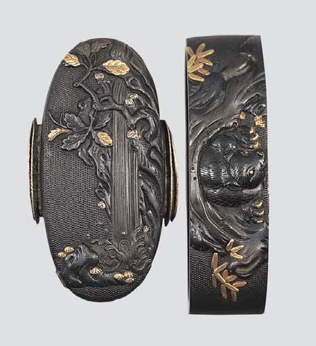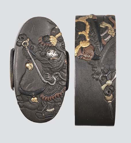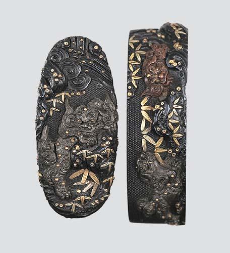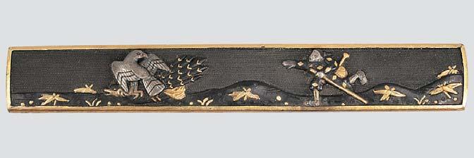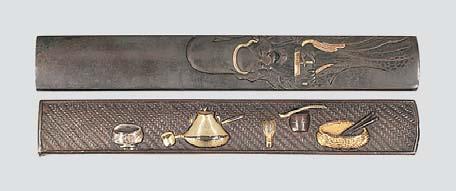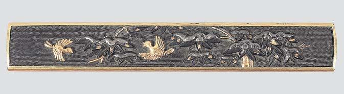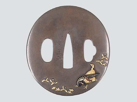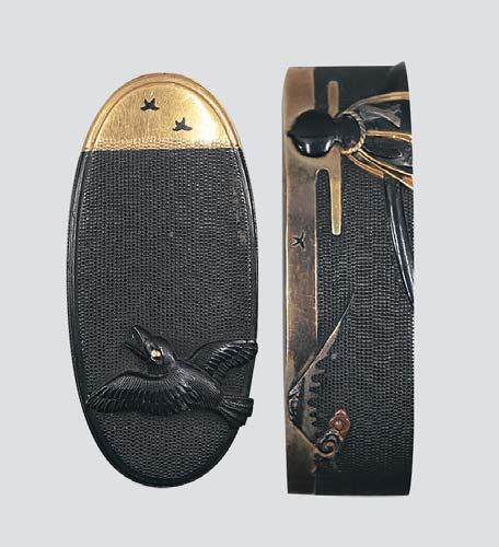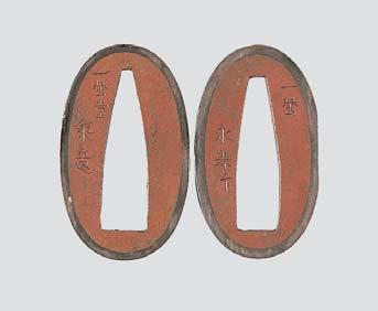 「文化十二亥(1815)八月 明珍宗長」顎先銘 練韋本小札二段垂