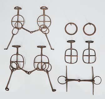三具 其々が寄せと想定される。三本筒籠手(家地大破)、練韋 佩楯、鉄五本篠臑当。臑当の立挙には金具も練韋も綴付 けられていない。