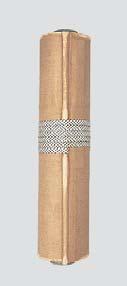 胴 鉄切付札を黒漆塗し、前立挙三段、後四段、長側五段 の二枚胴とする。胴裏は一面黒革張。三板は黒漆雁木 篠とし、鍍金素文覆輪を廻らす。前後立挙には金銅唐 草 透の入八双金物各三で抑え留める。肩上も雁木篠 とし、襟廻りは亀甲金を紺地金襴で包むが大破する。