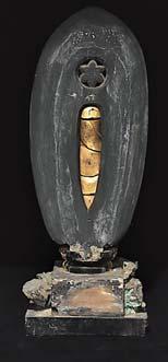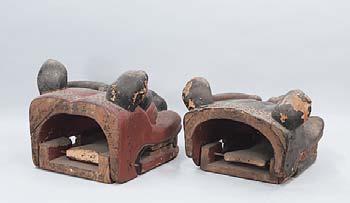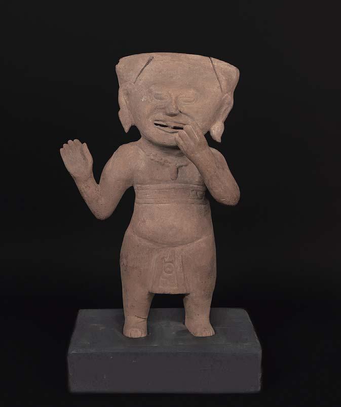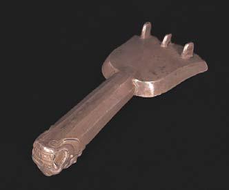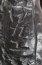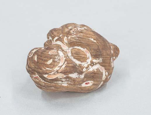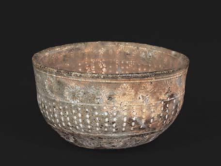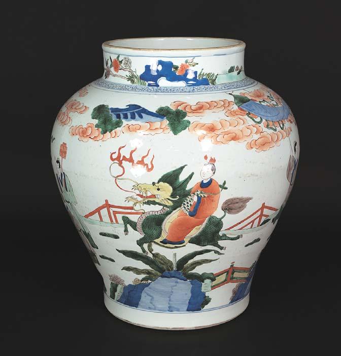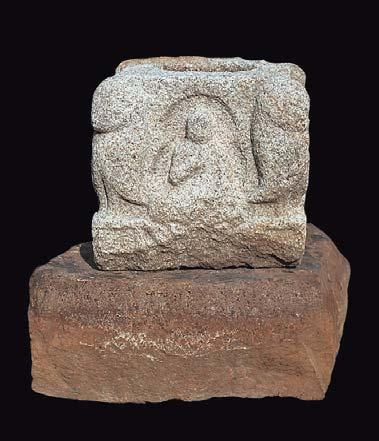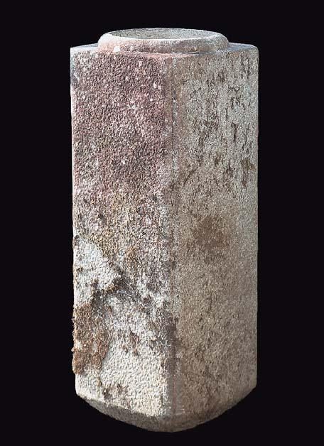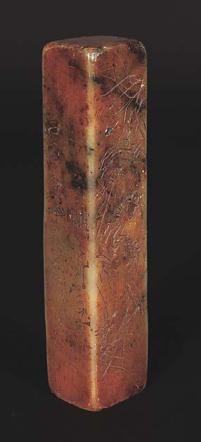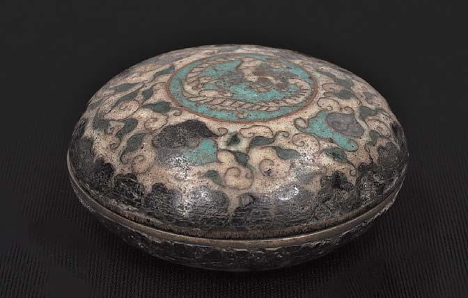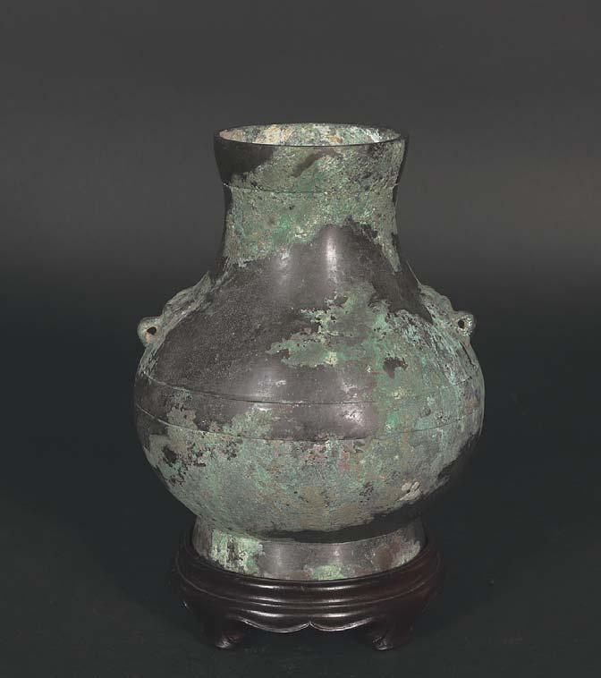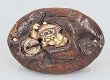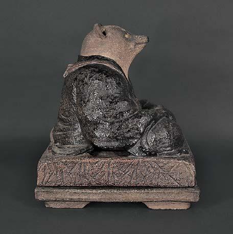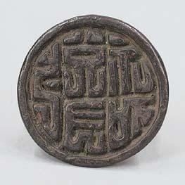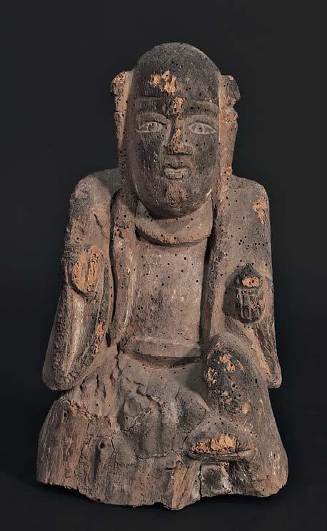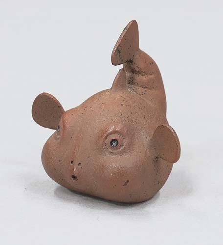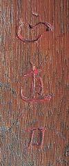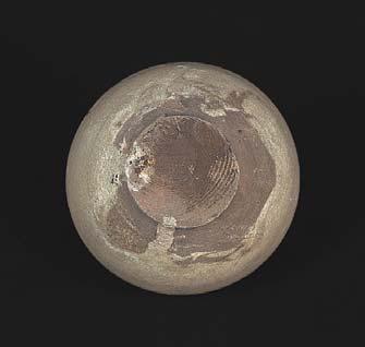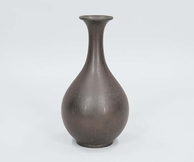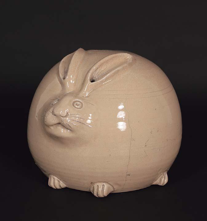#001 慶長十八年銘唐津三耳茶壺 ¥1,200,000~ 付所載本 30×30×35 口辺欠損 三耳欠失 甕屋ノ谷窯 古法の叩きで整形し、壺の内には叩きに対応する青海波文の痕跡が認められ、茶褐釉を施し、高温 焼成されたことが知られる。そして肩部に釘で横方向に「慶長十八年(1613)五月拾日」の銘文を縦書き に彫る。