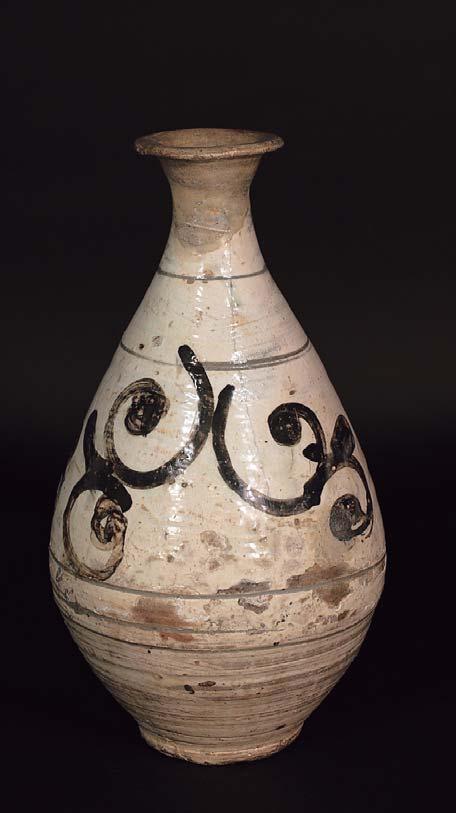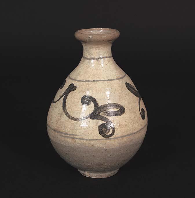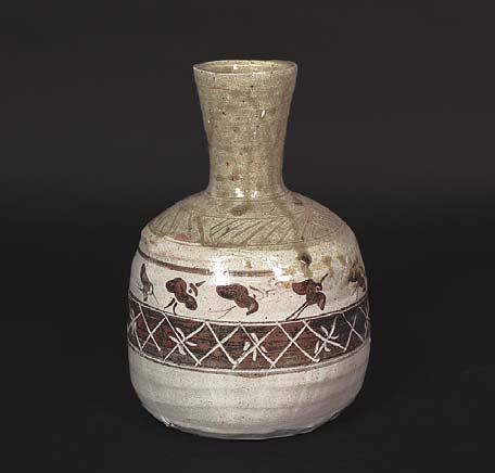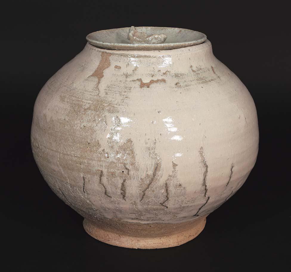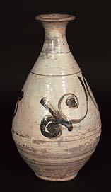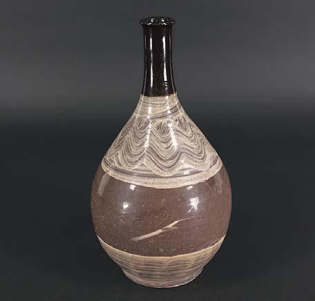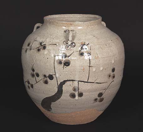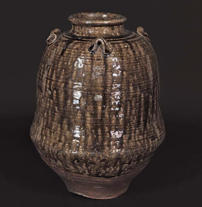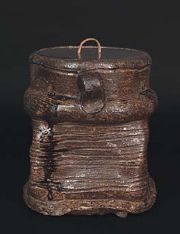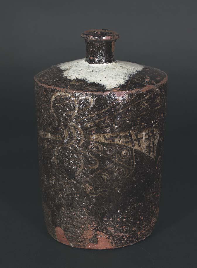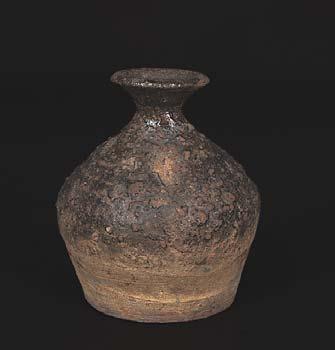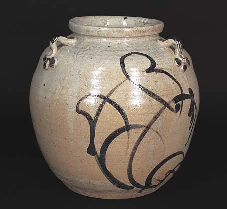 桃山期のルソン茶壺への日本人の狂騒は、慶長元年(1595)、フィリピンに代理総督として着任した AntoniodeMorga(1559-1636)の『フィリピン諸島誌』に詳しいが、掲出を含む唐津で焼成された二点の 茶壺は、「ルソン茶壺」の刺激を受けて本朝で焼成された最初期の茶壺遺品とみて大過ないだろう。