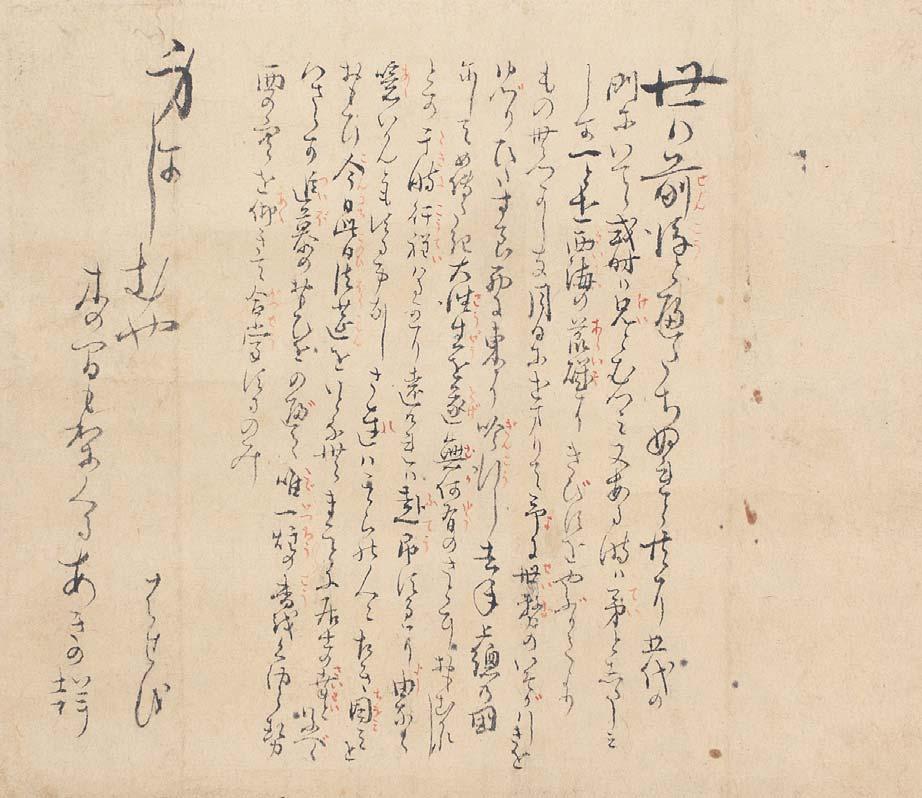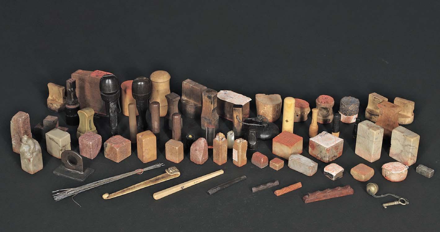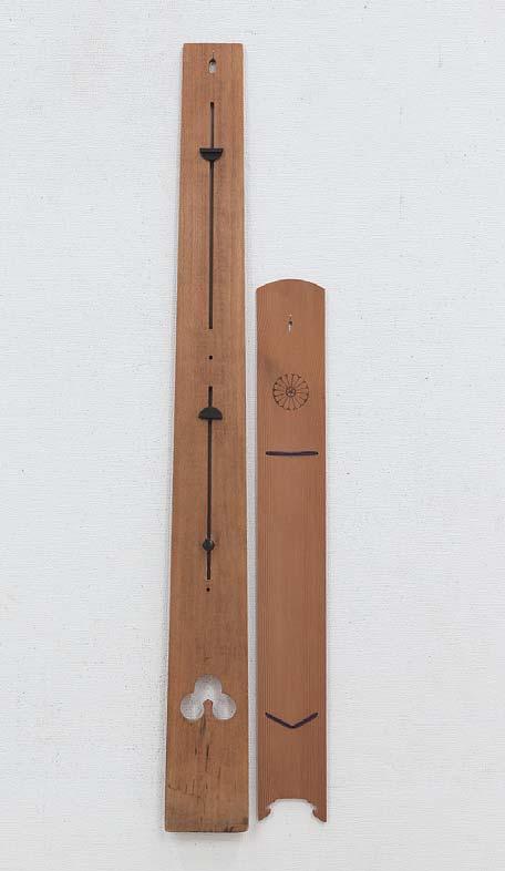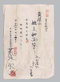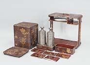 □寸法の記載は、ヨコ×タテ×タカサ(ただし、硯はタテ×ヨコ×タカサ)とし た。単位はセンチ。着物類のヨコは、袖口から袖口まで。タテは、肩口から裾 端まで。袖は、その天地の長さ、筒袖は、袖口の寸法をヨコ、タテのあとに追 記した。ものによってはその高、巾、長、だけを記したものもある。また不要 と考えられるものは省いた。