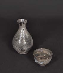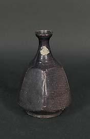 #006 唐津芋徳利 唐津辰砂ぐい呑 ¥800,000~ 徳利:付識箱(桐) 85×85×145 口縁銀補修 牛石窯(伝世) ぐい呑:付木箱(桐) 7×7×5 宇土ノ谷窯