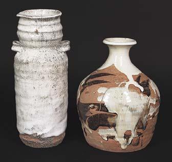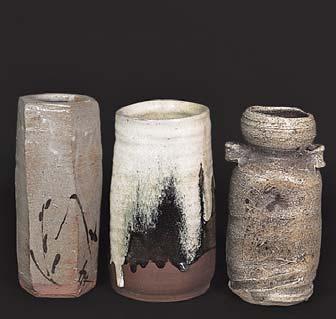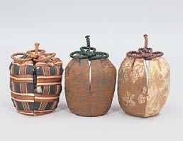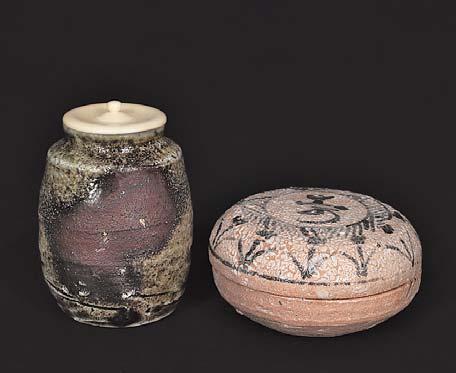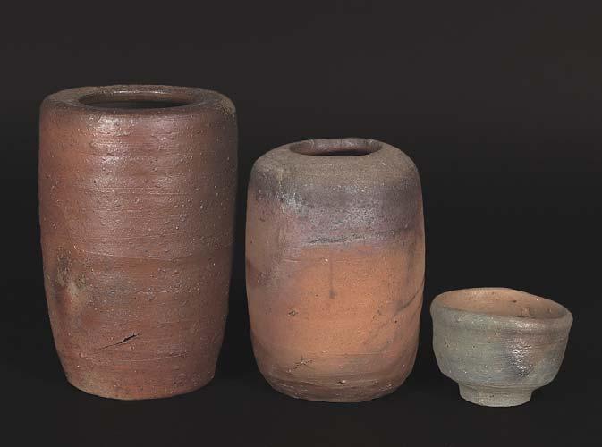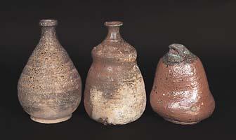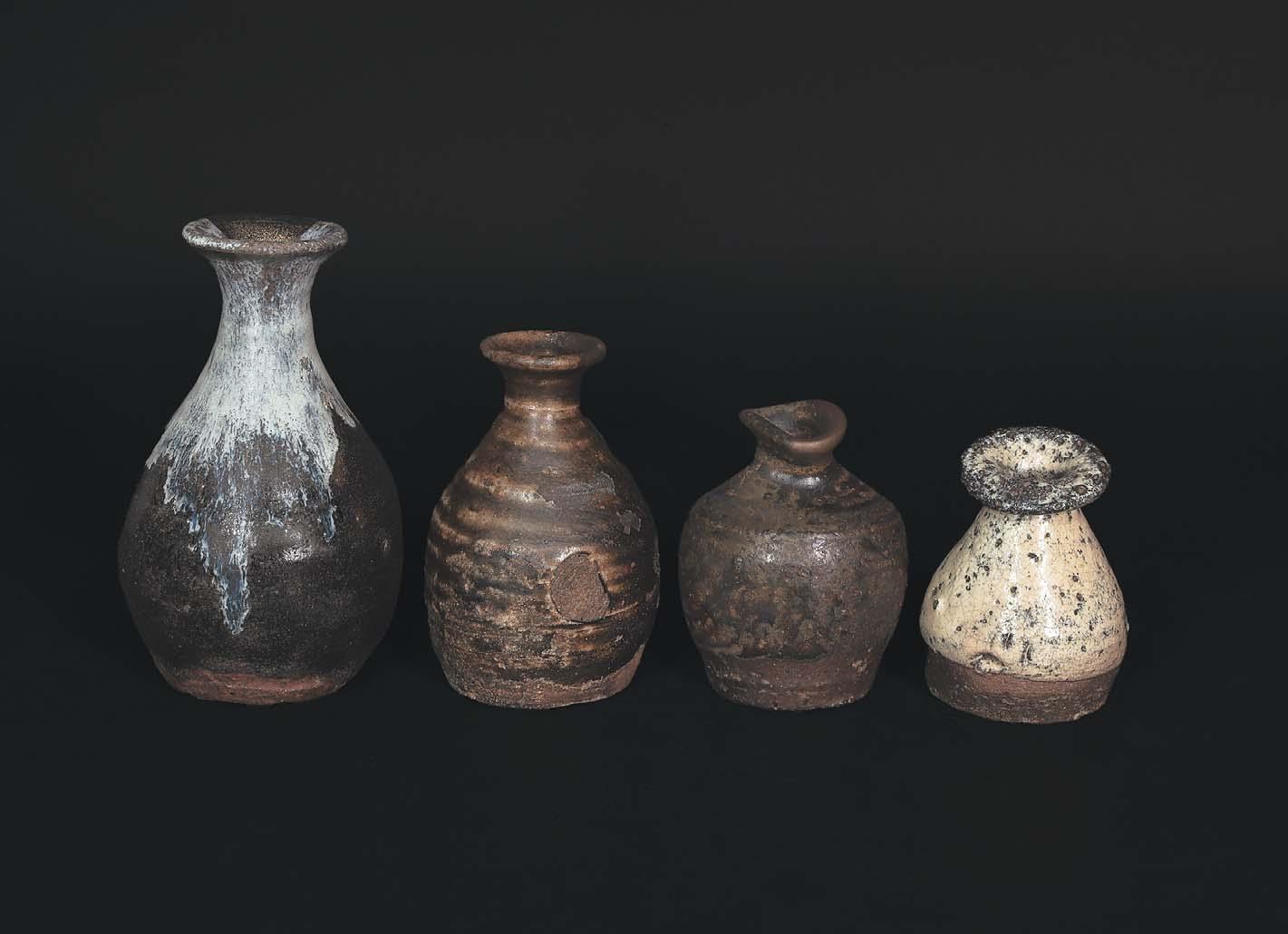 #011 唐津徳利・振出 四 ¥750,000~ 藤ノ川内窯 朝鮮唐津徳利:付木箱(杉) 9×9×15 口辺蒔絵補修 黒唐津徳利:付識箱(桐 着色) 7×7×12 口縁共色補修 黒唐津徳利:付時代合箱(桐) 7×7×9 口縁共色補修 斑唐津振出:付木箱(桐) 菅蓋 65×65×9 口縁共色補修