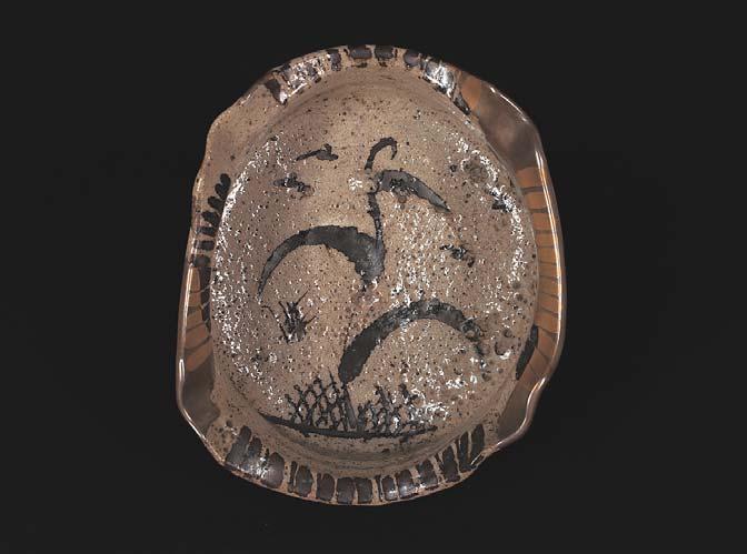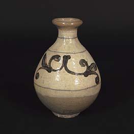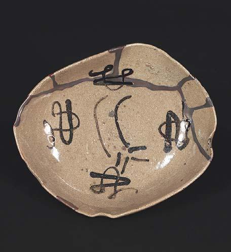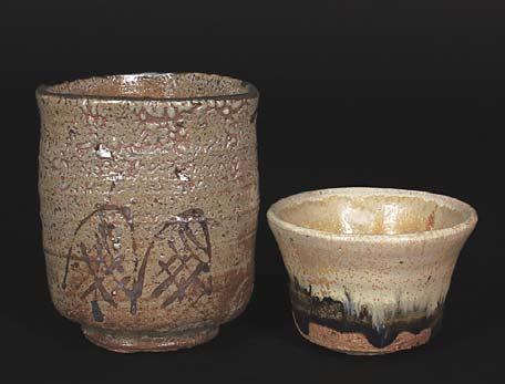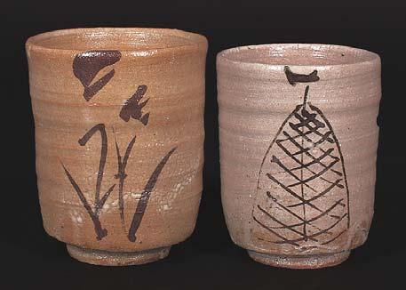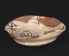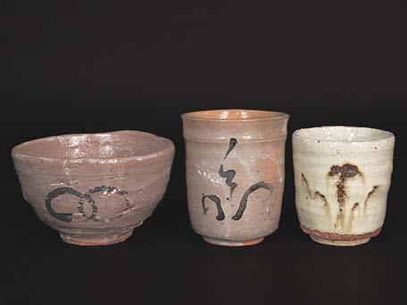 古唐津の魅力を挙げれば、変幻自在の釉調、稚拙絵などを施した茶陶を主とする独特の 趣の妙に落着しよう。