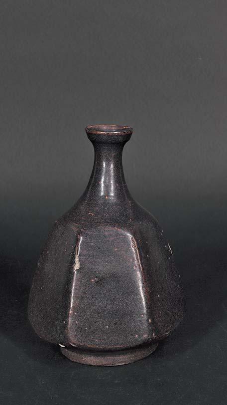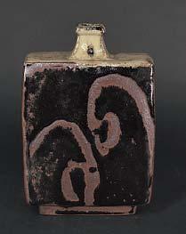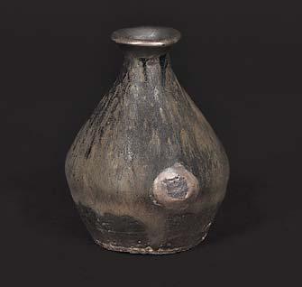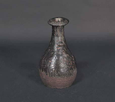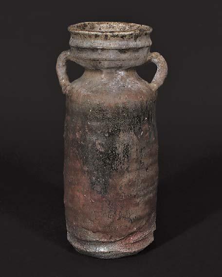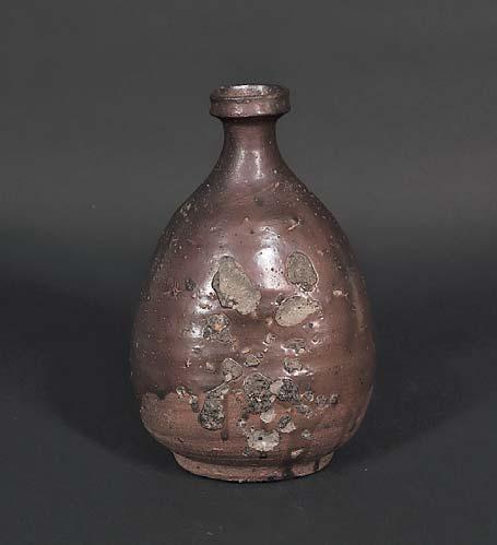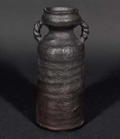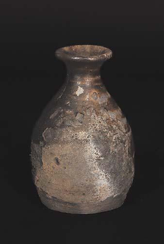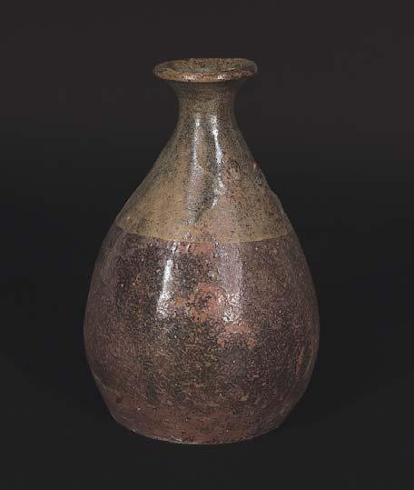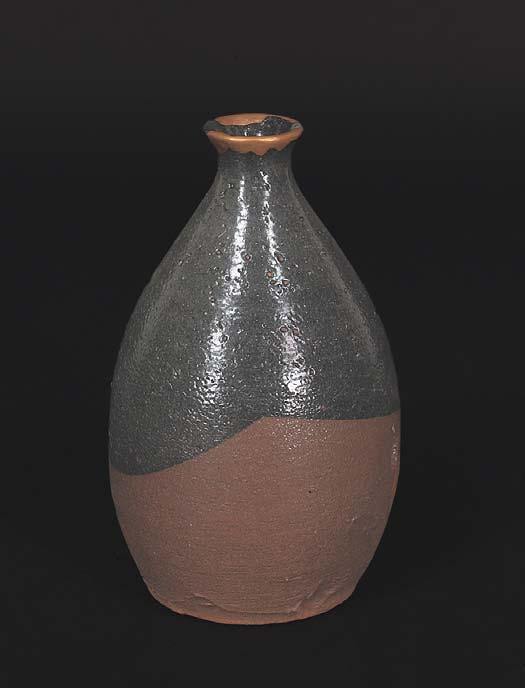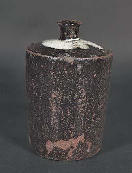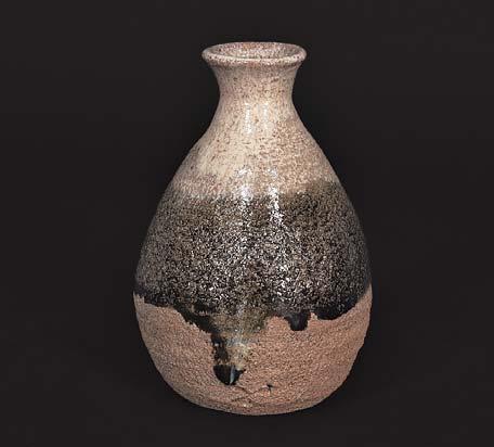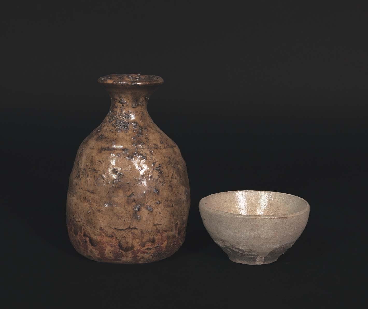 #005 黒唐津双耳徳利 唐津辰砂ぐい呑 ¥1,000,000~ 徳利:付識箱(桐) 7×7×105 底窯印 西岡小十箱識 藤ノ川内窯 ぐい呑:付木箱(桐) 仕覆 7×7×5 宇土ノ谷窯(伝世)