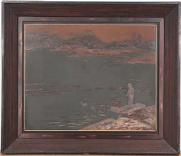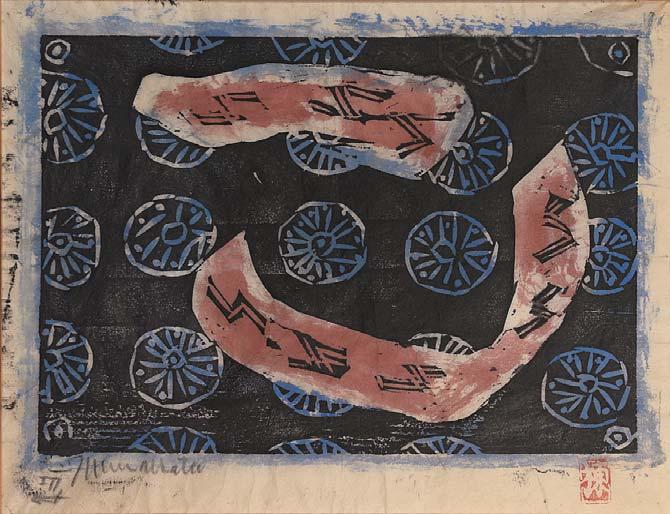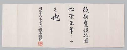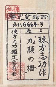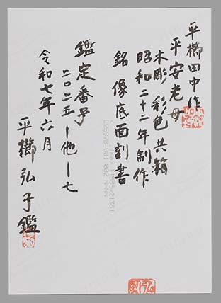 カタログ掲載の全作品に経年損傷、実作品の色目等に多少の差異があり、下見会での実見 確認を原則としております。下見会へのご来場が困難な場合には、コンディションレポートを 受け付けます。お申し込み順での対応となりますので、お早めにお問い合わせください。真贋 については未詳。
