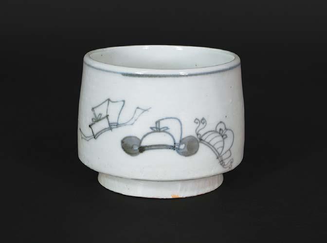 先の三例とは、釉調、形姿、横書きの年銘等に相違を視認するものゝ、永竹威説に従えば、「文禄役 (1592)以前に存在した可能性のある第一期の民窯雑器時代につづく、第二期の茶陶唐津時代の草創期、 桃山末期」説を証明する遺品でもある。