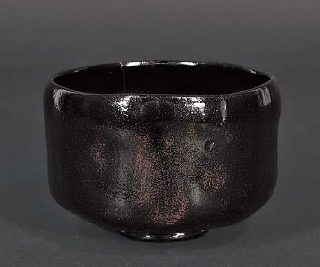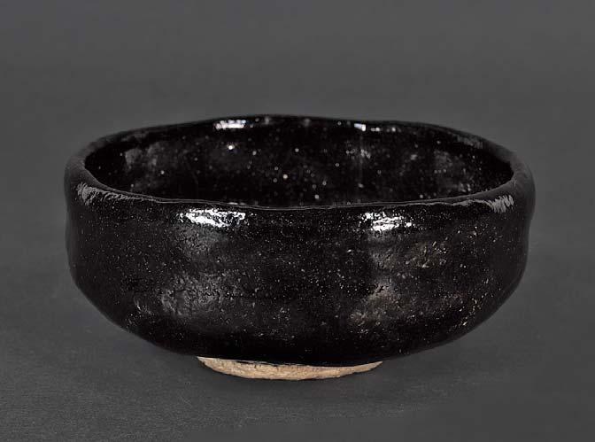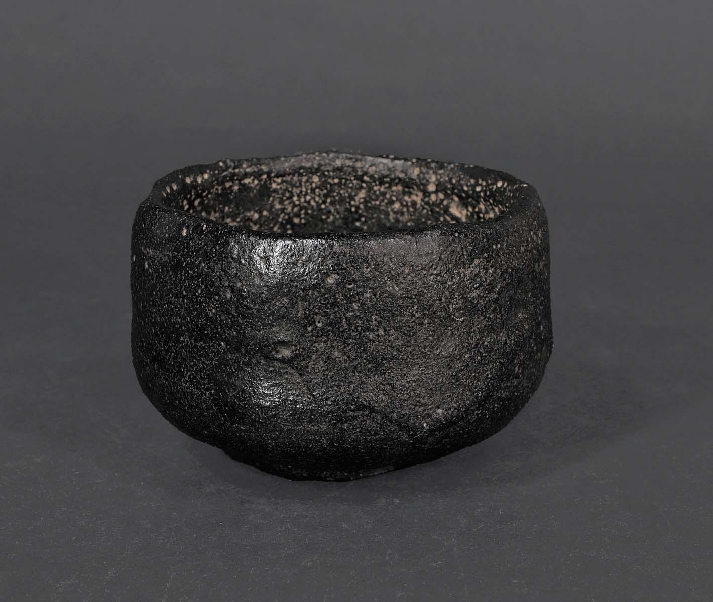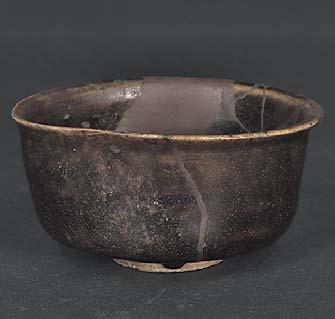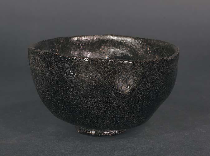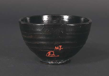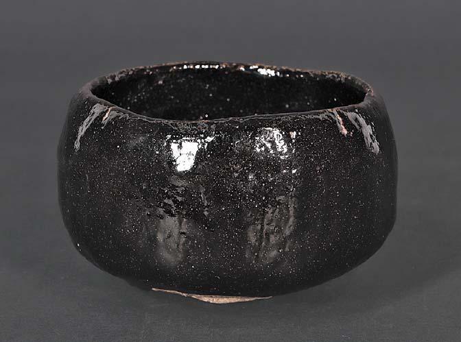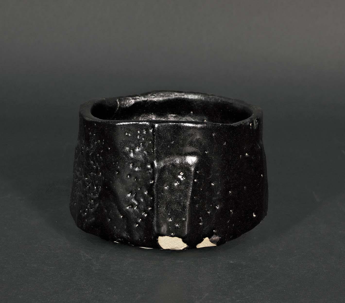 #017 黒唐津沓茶碗 ¥300,000~ 付時代識箱(桐 虫喰) 15×10×8 口辺、高台小補修 李祥古場窯