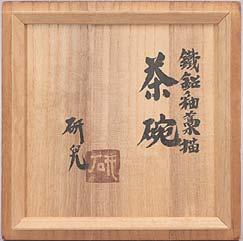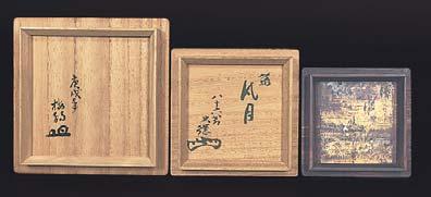 付時代識箱(桐 貼札) 12×12×4 窯キレ金補修 道園窯