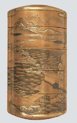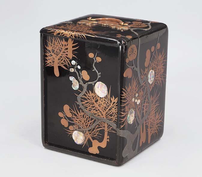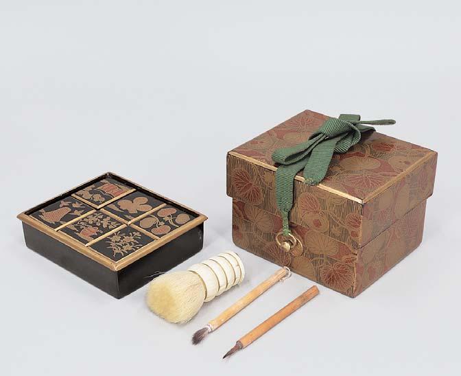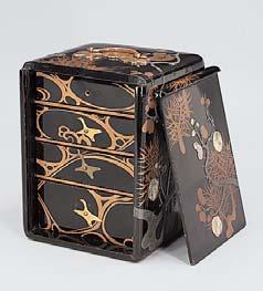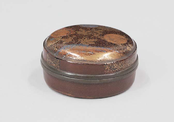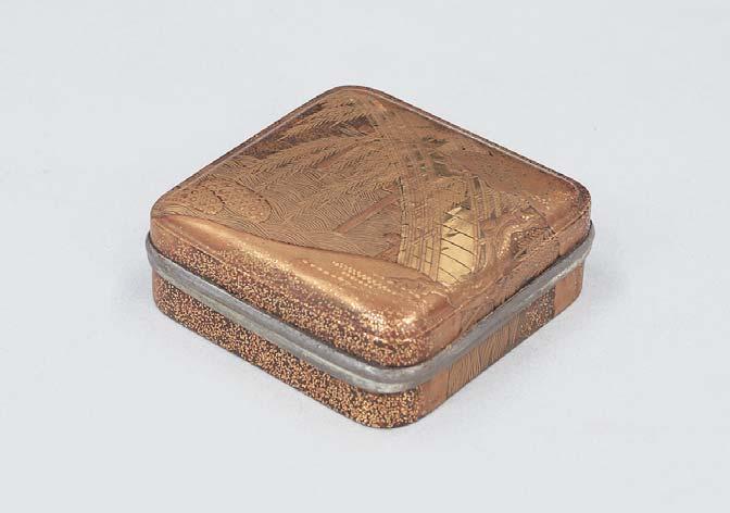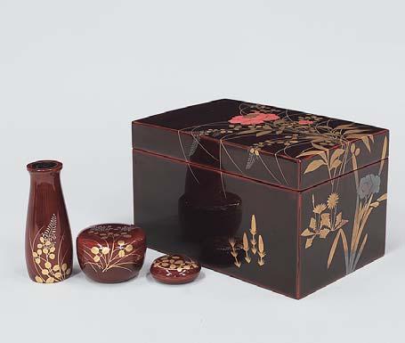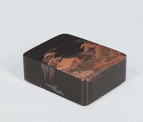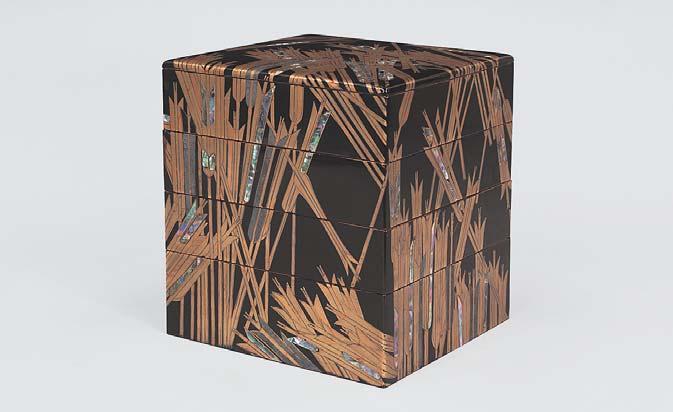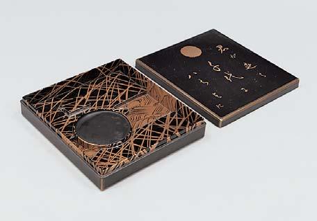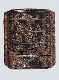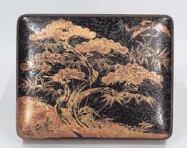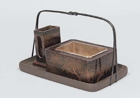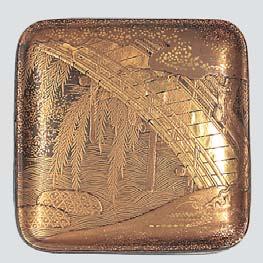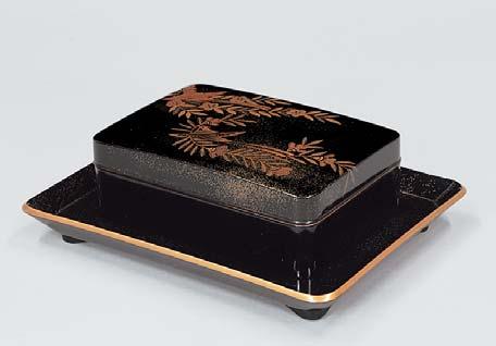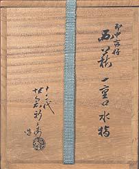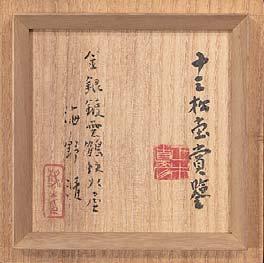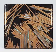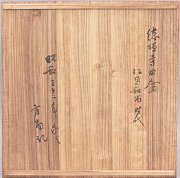 付木箱(杉) 所載コピー 14×13×75 銀地龍田川蒔絵補修 小十冠者窯 所載時の共色補修を現状に改む 『目の眼』(20113)所載