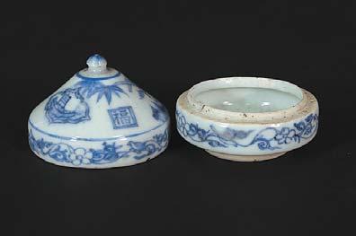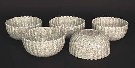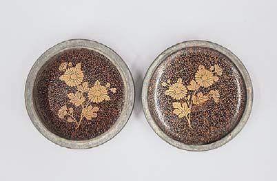 水を溜めて使用する道具類であって、底面ないし器腹に明らかな瑕疵を認める 場合、水が漏れるか事前に確認することがある。確認できた場合はその旨を記 載するが、記載のない作品についての健全性を保証するものではない。
