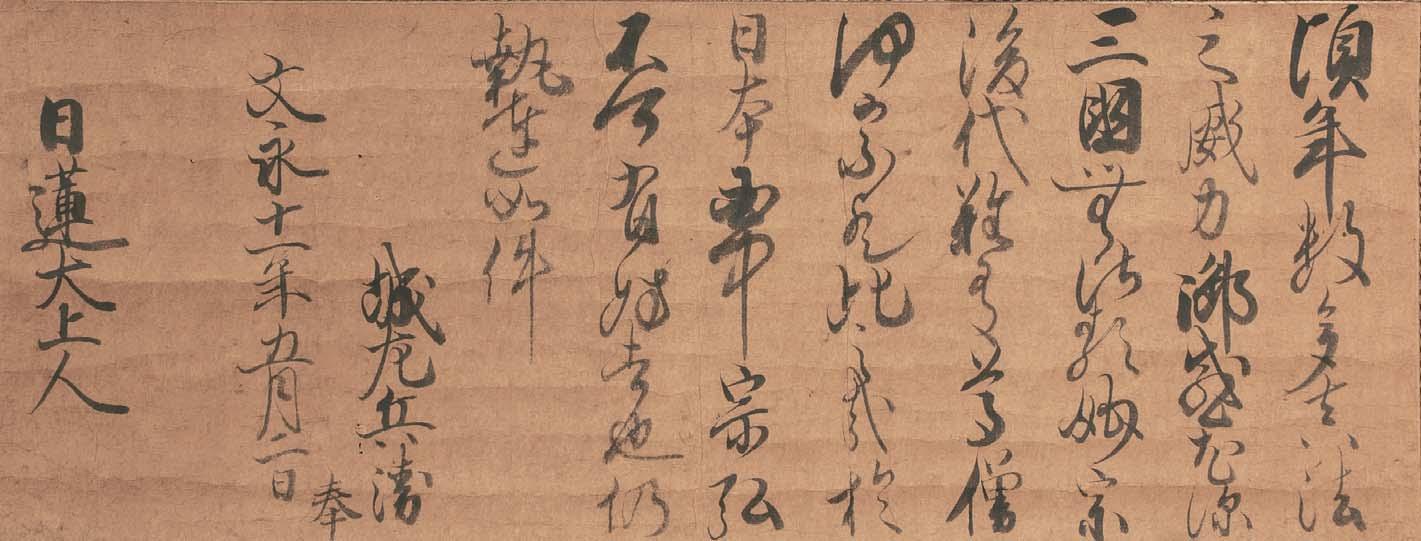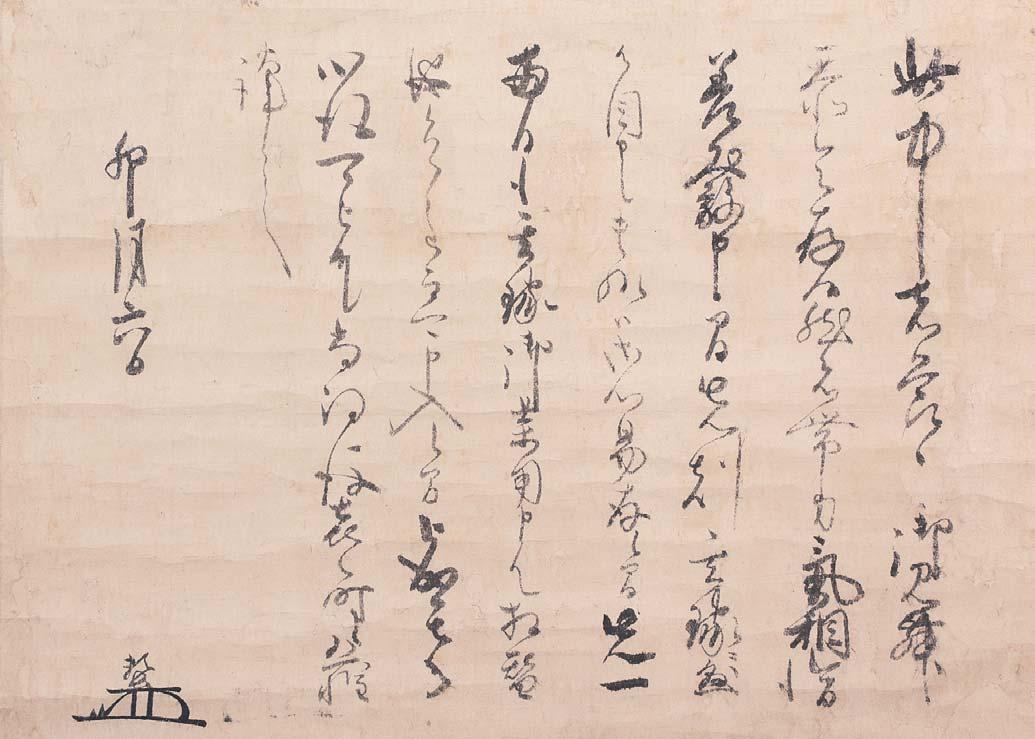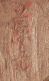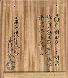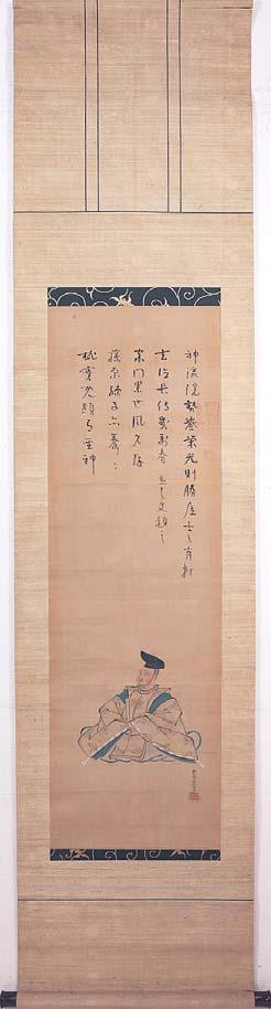 銘文「進入 日本いきしま 風本宮 聖母大菩薩 御神物ちやいれ 是ヲ心サス 喜斎 百良内村生 宗靏沙門(花押) 天正廿年 敬白」