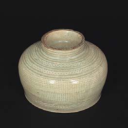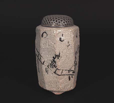掲出は、先の一 (天正二十年・1592)と二(慶長二年・1597)に続く、慶長十八年(1613)の銘をもち、古唐津の 紀年銘遺品としては三例目に該当し、茶壺としては二例目にあたる。