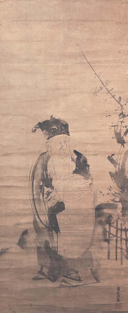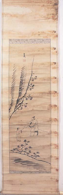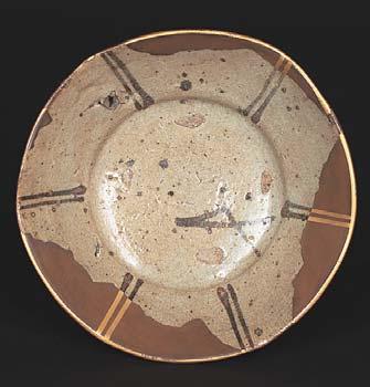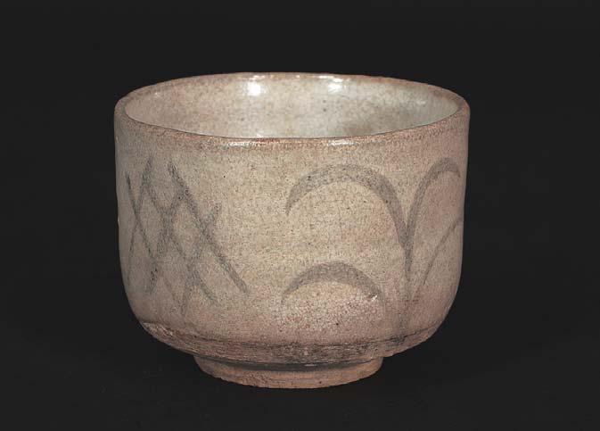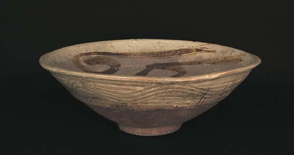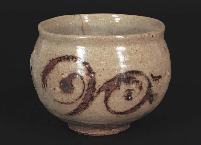 なかでも稚拙絵の魅力は、志野や織部に共通するものであり、まさに桃山陶を代表する。 それらを古田織部(1544-1615)の関与に短絡しても許されよう。稚拙絵に先行する奥高麗系の 古唐津は、文禄慶長の役(1592-1598)に先行し、武野紹鴎(1502-1555)、千利休(1522-1591)に代表さ れる織部以前の茶方の影響を想定しなければならないだろう。加え、西海の地を勘案する ならば、博多の豪商であり茶人として政治的な活動も自在にした島井宗室 (1539-1615)、神屋 宗湛(1551-1635)、大賀宗九(1561-1630)あたりの数寄者も視野しなければならないだろう。