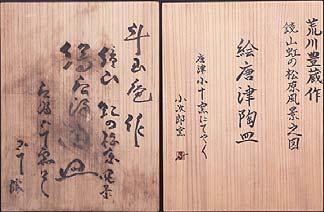 #016 絵唐津向付 ¥350,000~ 付唐木箱 唐木蓋 7×7×8 大破補修 道園窯