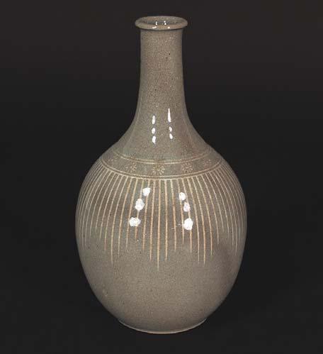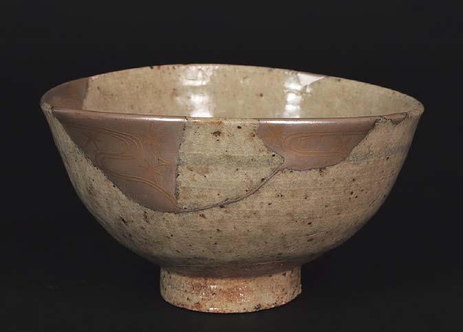 更に降って寛永年間に始発する「献上唐津」には、小堀遠州(1579-1647)の「きれいさび」の 影響を隅見することになる。いずれにしても、古唐津の魅力は、時代を画した有力な茶方の 美意識の影を色濃く反映していると想定しても許されよう。