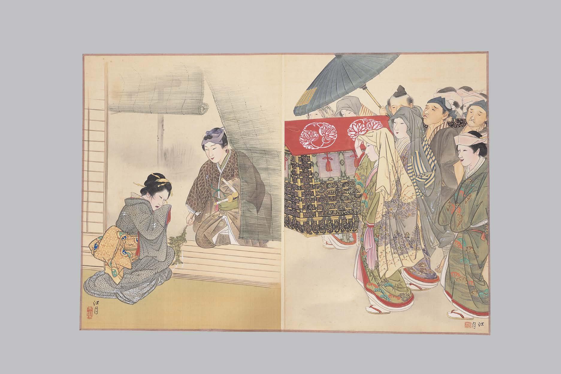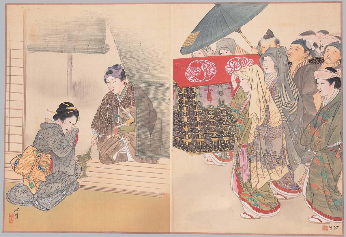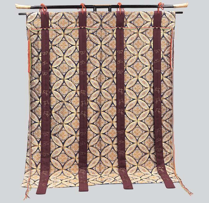 □打掛の表記について 小袖、あるいは、振袖と、打掛の形態的変化は殆どない。ここでは、織物と、 婚礼衣裳として着用されたものを打掛と表記した。