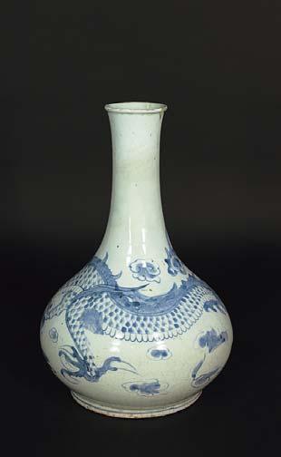 #007 青唐津長壺 ¥450,000~ 付木箱(杉) 23×23×31 口辺剥離補修 飯胴甕窯