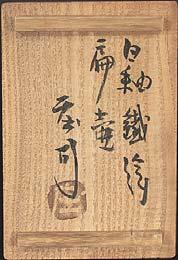 註2:銘文「進上有安村 玉泉寺 御本尊茶入 宗靏(花押) 今月今日 敬白」